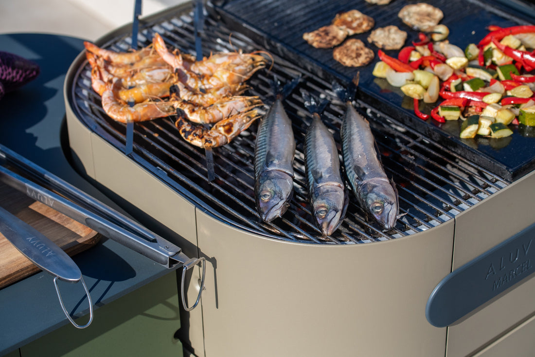 Installer une demi-grille et une demi-plancha et attendre que les braises deviennent blanches pour lancer la cuisson.