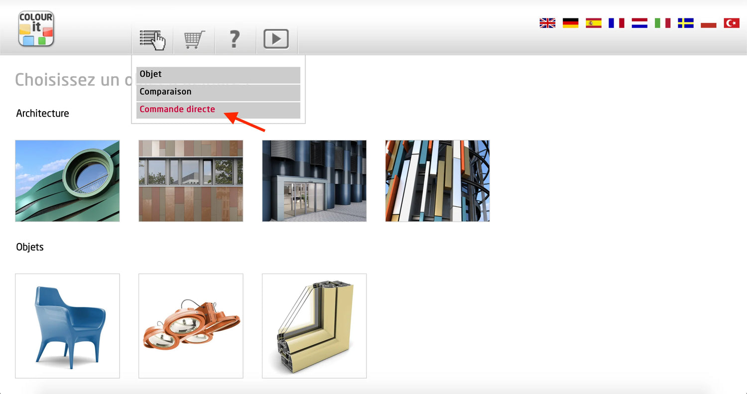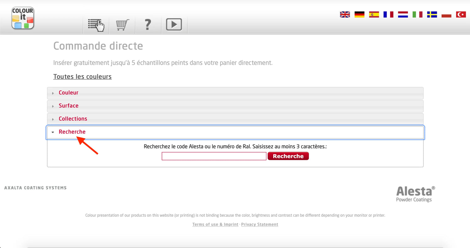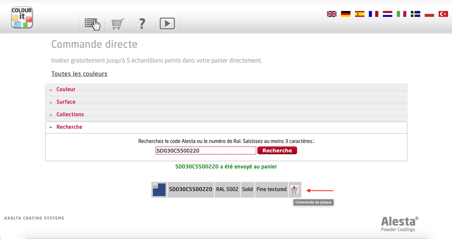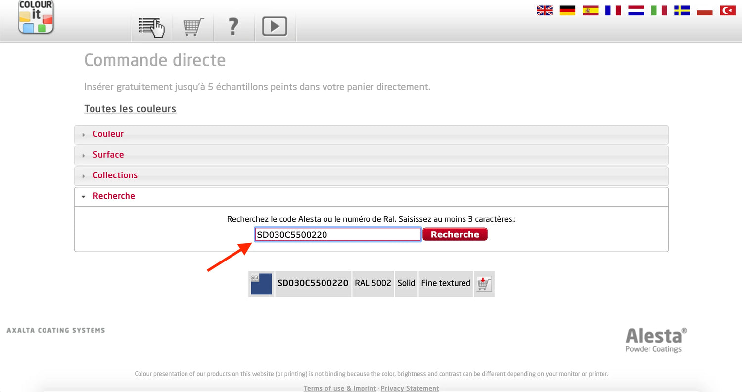 Dans la zone de recherche , entrez la référence de la couleur souhaitée