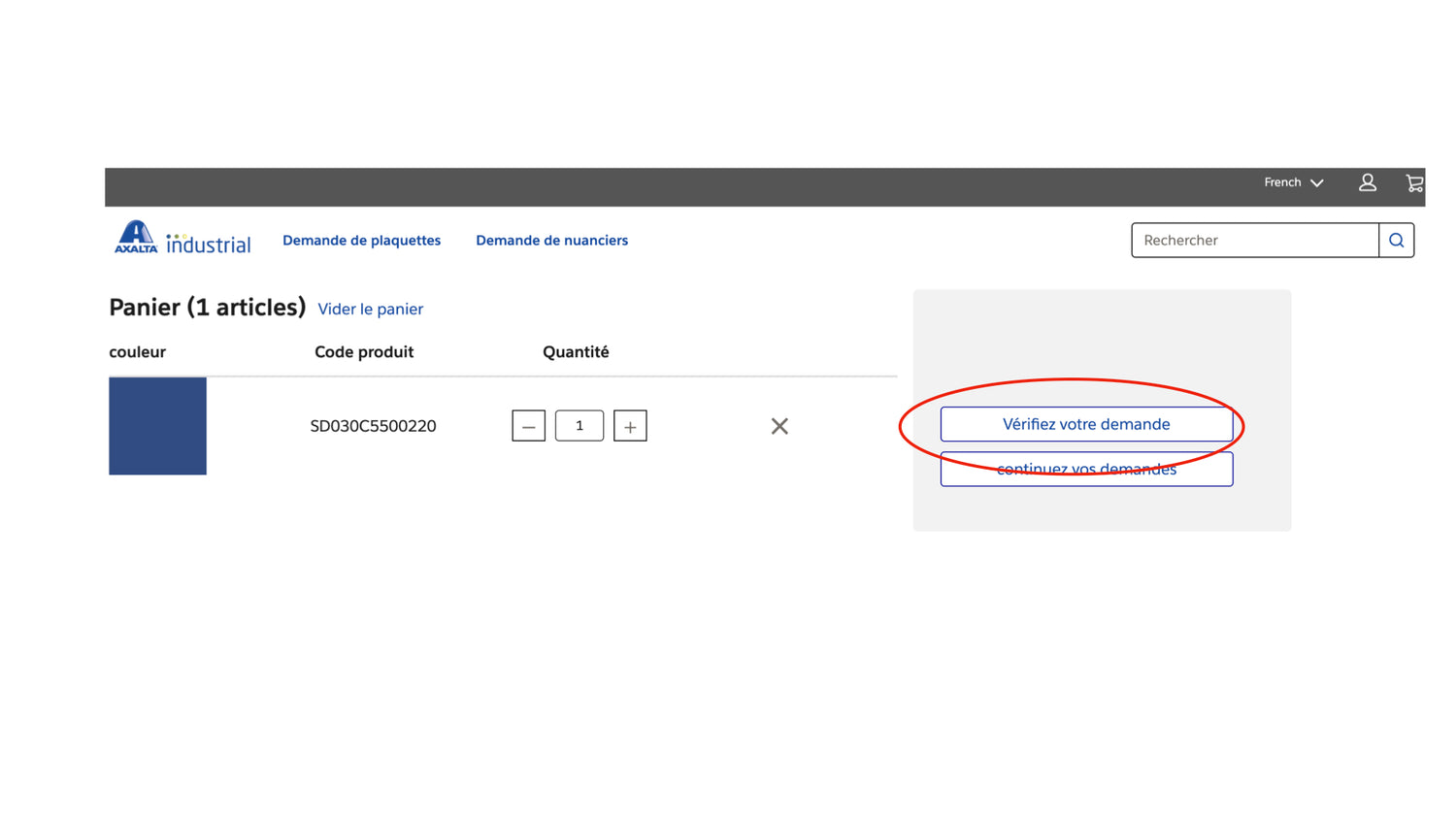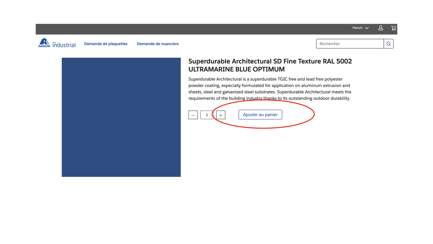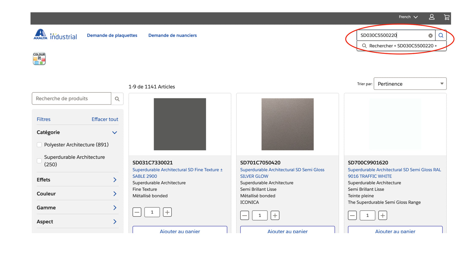 Cliquez sur la plaquette de couleur qui apparait dans le résultat de recherche pour accéder au caractéristique de cette couleur . Appuyez sur "Ajouter au panier"
