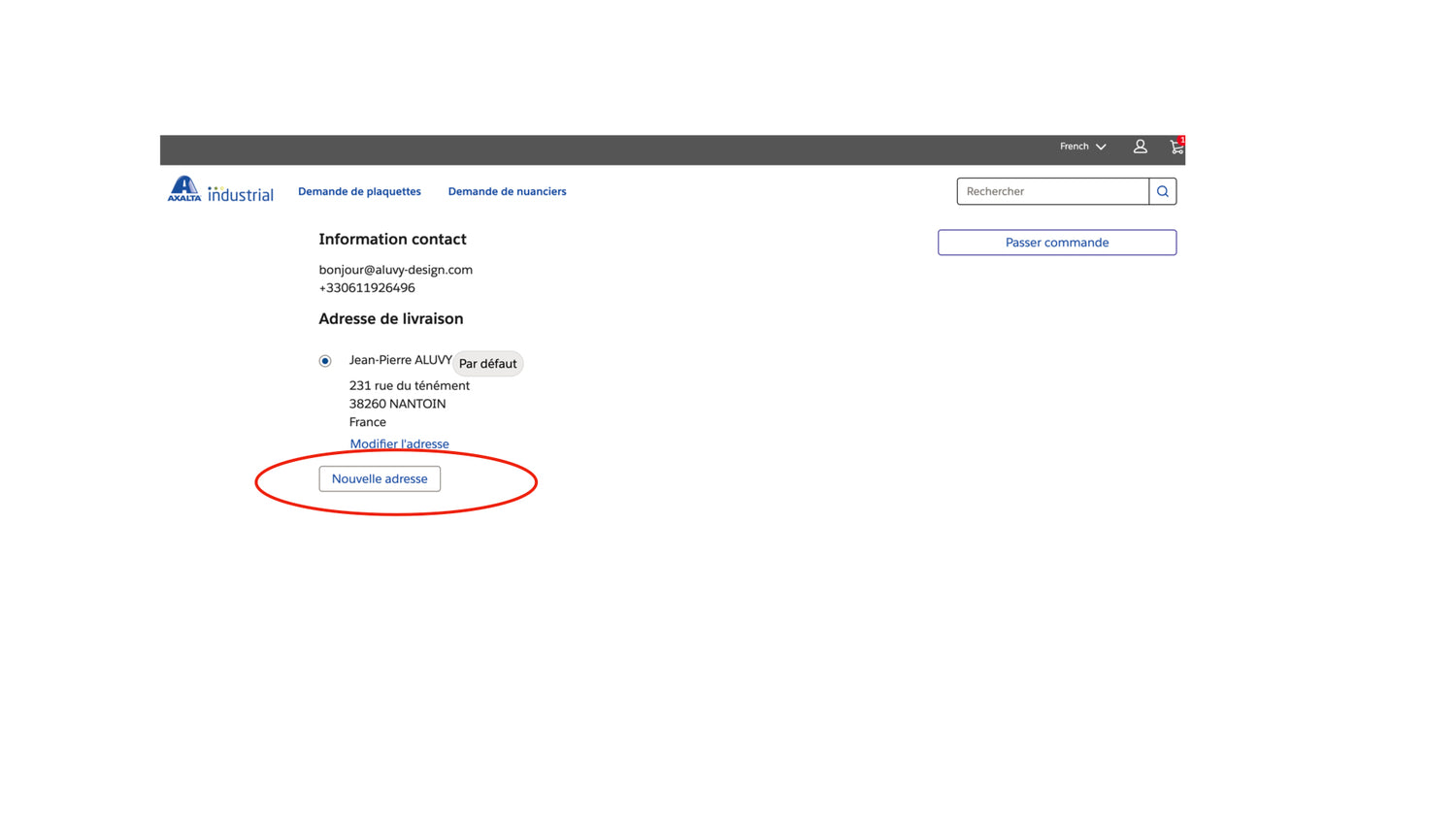 Cliquez sur nouvelle adresse et rentrer vos coordonnées qui permettront à notre partenaire de vous transmettre les plaques par voie postale.