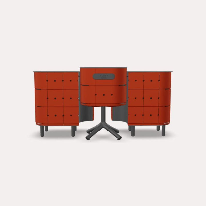 Grâce à son plateau en aluminium, JEAN vous propose un grand plan de travail qui résistera à tous les temps. Comme tous les produits ALUVY, la cuisine d'extérieur peut rester dehors toute l'année.