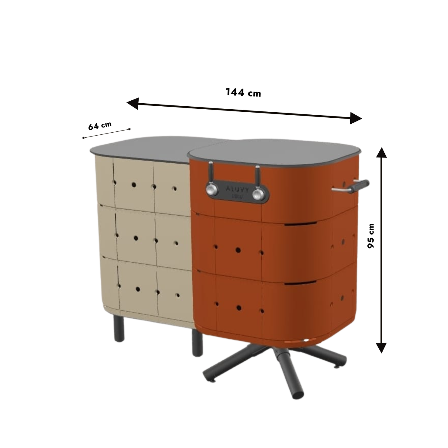 - Accessoire inclus : votre LULU est livré avec un couvercle de protection fabriqués en inox. Lui aussi est fabriqué en France. Il offre une protection contre les intempéries et qui offre peu de prise au vent. Il doit être repositionné sur un foyer complètement éteint.