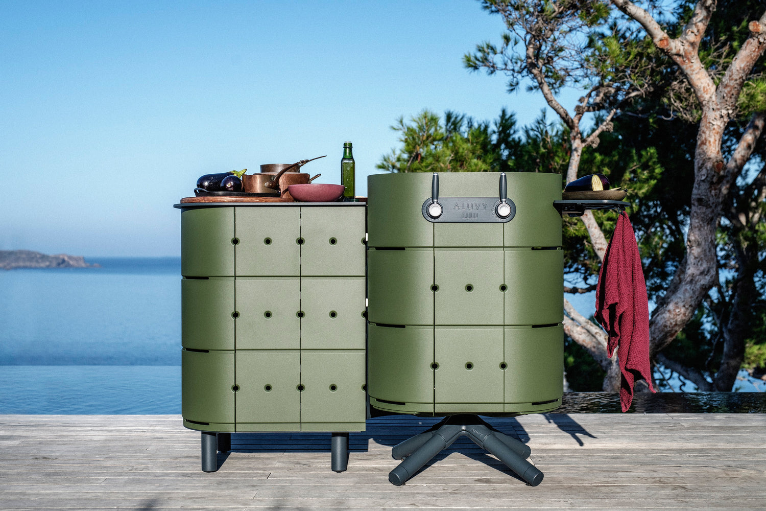 Osez le "full color" en choisissant une couleur unique pour vos deux modules. L'unité créée offre un design discret et met en scène votre cuisine avec élégance. Reste à choisir l'emplacement, terrasse, pergola, bord de piscine et comme elle modulable , elle est facilement transportable. Tout est permis:-)