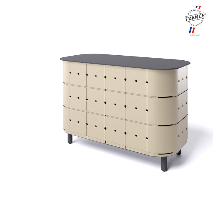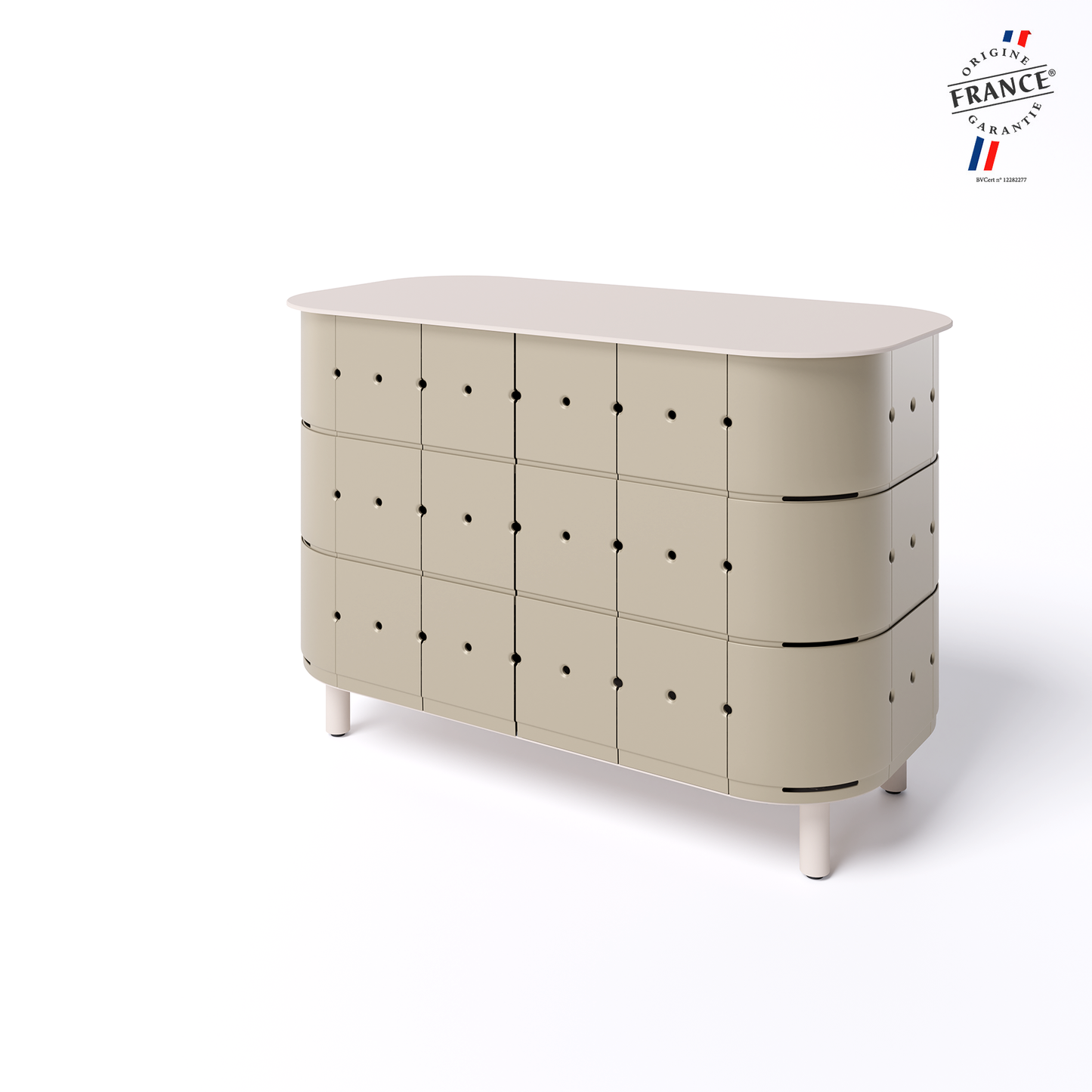 GABRIEL , c'est LE meuble qu'il vous faut. Avec ses belles proportions, il peut accueillir toutes sortes de rangements. Il a de la ressource! A la fois parfaitement intégré dans l'espace de nos cuisines d'extérieur ,il peut également devenir un meuble de rangement très astucieux près d'une piscine, par exemple où bouées, serviettes de bain ou jeux d'enfants seront bien abrités. Et pourquoi pas lui dédier une place de choix dans votre intérieur? Avec ses belles lignes design et notre grand choix de couleurs , il trouvera facilement sa place dans votre salon ou votre véranda.