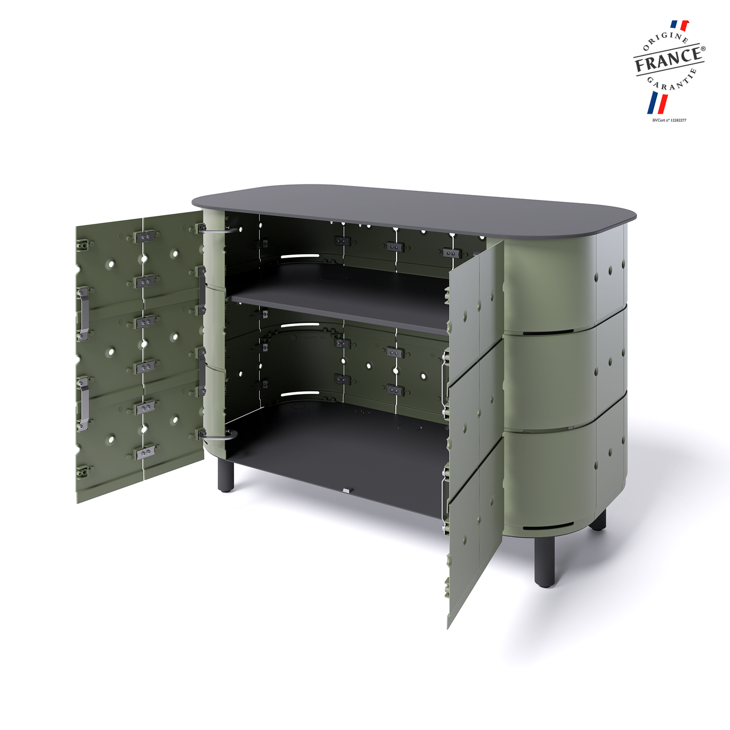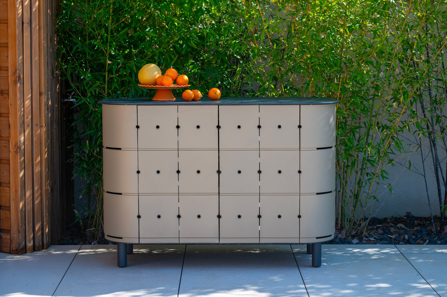 GABRIEL c'est LE meuble qui vous manquait pour ranger tout votre univers extérieur .  Avec sa belle profondeur , il peut aussi bien accueillir votre jolie vaisselle, votre linge de table, le sac  de charbon, vos bûches pour le braséro ou la bouteille de gaz de secours. GABRIEL est large et profond. Il est plein de ressources. Il peut même devenir le buffet design de vos réceptions !