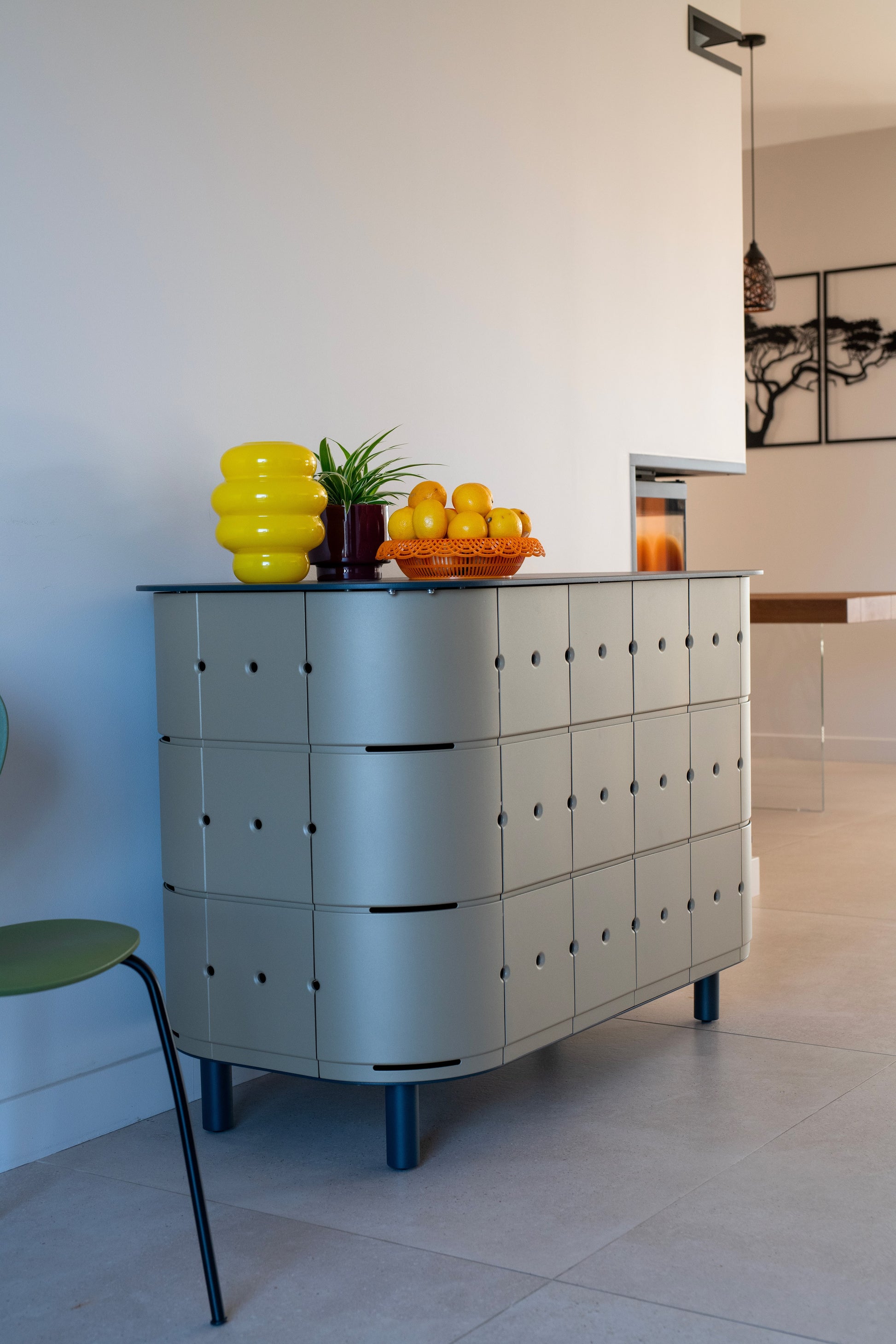 Parce que nous avons toujours envie de vous proposer LE produit ALUVY qui fera toute la différence dans VOTRE univers, nous avons décliné notre meuble de rangement design en 2 dimensions. GABY, fier de ses 84 cm de longueur permet d'optimiser votre espace et de proposer un bel espace de rangement. GABRIEL ,quant à lui ,s'impose élégamment sur ses 125 cm de longueur . Tous les deux offrent leurs lignes design et leurs volumes généreux au profit d'un rangement efficace!