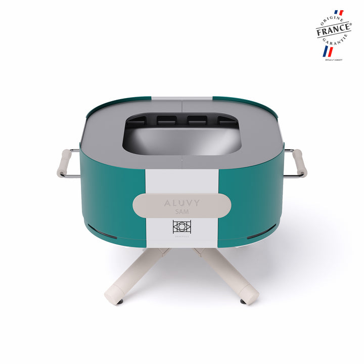 SAM est fabriqué en France dans notre usine située en Isère. La cuve, les parois extérieures et les pieds sont en fonte d'aluminium. Inoxydable et recyclable, ce matériau vous permettra de laisser SAM sur votre terrasse toute l'année.