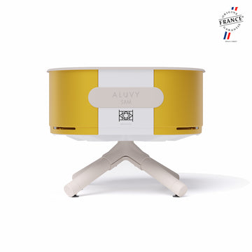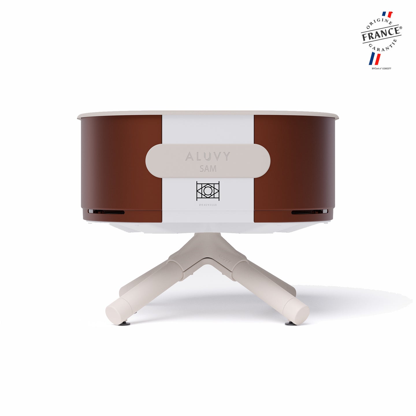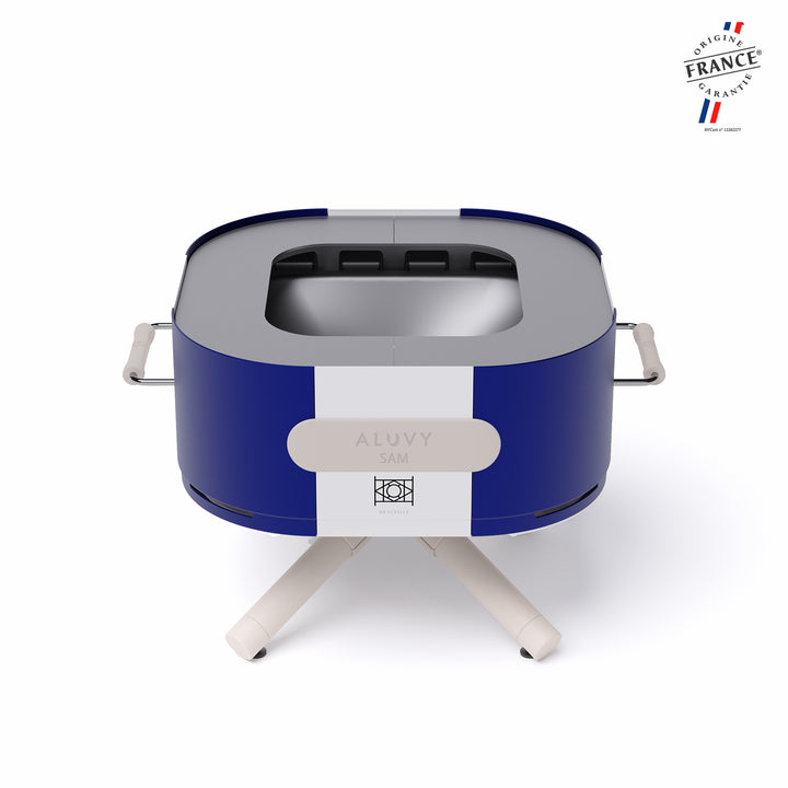 Tout comme MARCEL et LULU, SAM est conçu en aluminium, ce qui lui permet de rester dehors à la belle étoile, et ce, toute l'année. SAM saura réchauffer l'atmosphère de vos fraîches soirées automnales. Grâce à sa cuve en fonte, SAM fonctionne au bois, au charbon de bois ou aux sarments de vigne.